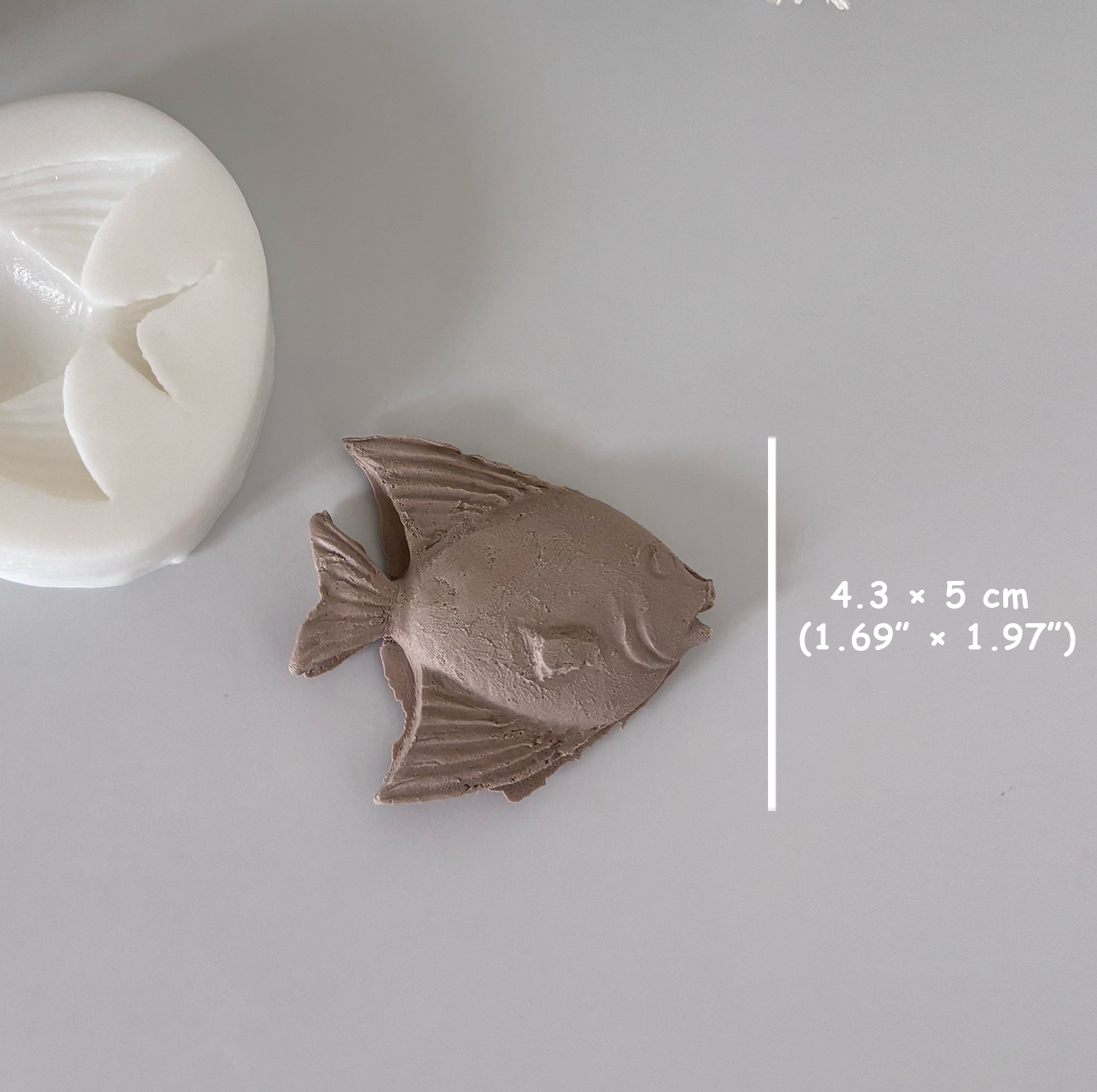 This mini angelfish silicone mold features a detailed tropical fish design with defined fins and body texture, ideal for creating elegant marine-themed pieces.
